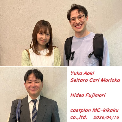 令和8年4月16日(木)<写真上段左から時計回りに…青木友香さん・森岡カール征太郎さん・藤森英生さん> 某CMのオーディション初日。青木さんと森岡さんは今期から所属されました!初オーディションいかがでしたでしょうか?
