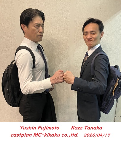 令和8年4月17日(金)<写真左から…車谷美子さん・樽井美帆さん,尾崎真次さん・松田ゆかりさん,藤本裕司さん・たなか和宏さん>車谷さん・樽井さんは ABC「せのぶら本舗」の収録にお越しくださいました。尾崎さんと松田さんは「月刊茶の間」の撮影に、藤本さん・たなかさんは某CMのオーディションの2日目にご参加くださいました。時間割が上手くいって終日の現場でしたが、充実してました~!
