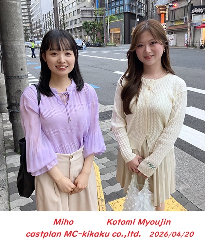 令和8年4月20日(月)<写真左から…実穂さん・明神言純さん> 新加入の明神さんはいきなりの初オーディションに。ベテラン実穂さんとともに頑張ってくださいました (*^^*)v