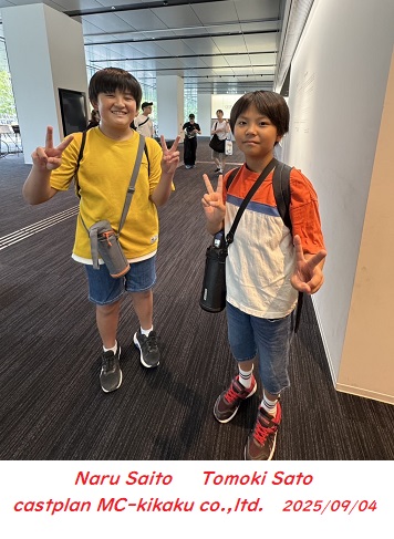 令和7年9月4日(水)<写真左から…齋藤 成くん・佐藤智輝くん> 大阪府市のPR動画撮影の初日。後日にも撮影がありますが、このコンビはいつも仲良しです!