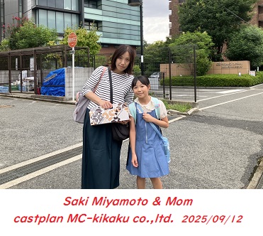 令和7年9月12日(金)<写真…宮本咲希ちゃんとお母様> 某企業様の研修用動画の撮影でした。お土産もしっかりいただきましたー!ごちそうさまでした (^_-)-☆