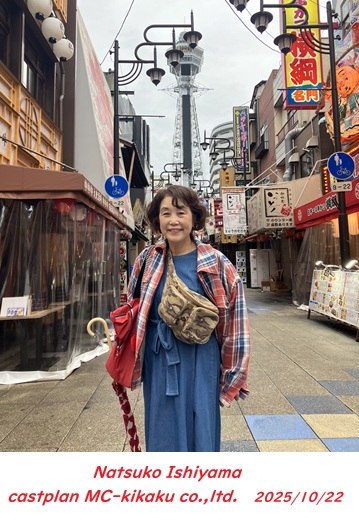 令和7年10月22日(水)<写真…石山奈津子さん> 某CM撮影にお越しくださいました。以前もMV撮影で新世界に。キャストプランの新たな「ナニワのおばちゃん」誕生です (*^^*)v そのMVは↓↓からご覧ください!