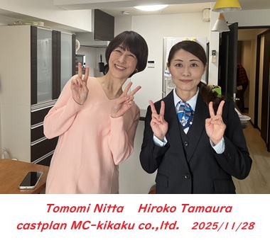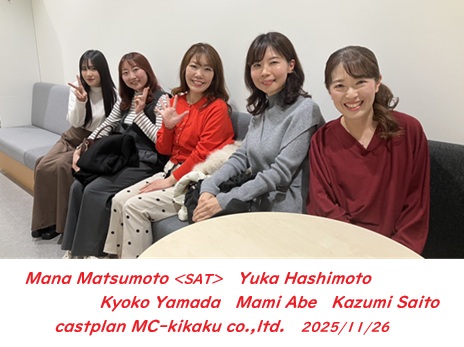 令和7年11月28日(金)<写真左から…山村弦也さん,新田朋美さん・玉浦尋子さん> 某企業様の研修用動画の撮影です。長年いただいているこの撮影、内部の方しかご覧いただけない作品なので、私も一度仕上がりを見てみたいです!
