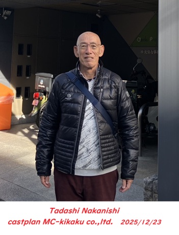 令和7年12月23日(火)<写真…中西 正さん> 某インフォマーシャルのオーディションにわざわざ京都までお越しくださいました。普段は薄着の中西さんもさすがに厚着でご登場です (^_-)-☆