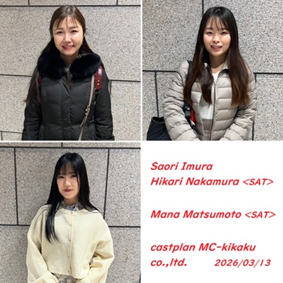 令和8年3月13日(金)<写真上段左から時計回りに…井村沙織さん,中村陽里さん・松本麻那さん<SAT>> 某企業様のSNS(Instagram)動画の撮影でした。軌道に乗れば毎月ご依頼いただけるそうで、楽しみが増えましたー! (*^^*)v