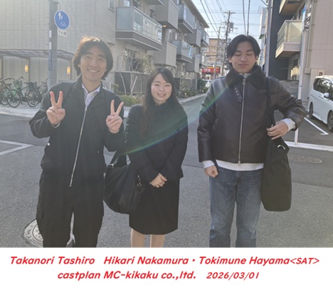 令和8年3月1日(日)<写真左から…田代貴典さん,中村陽里さん・巴山時宗さん> テレビ大阪「もしものマネー道」再現撮影にお越しくださいました~ (*^^*)v