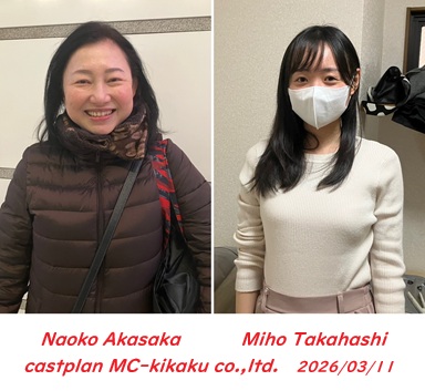 令和8年3月11日(水)<写真左から…赤坂尚子さん・高橋実穂さん> お2人とも時間差で同じCMの撮影でした m(__)m